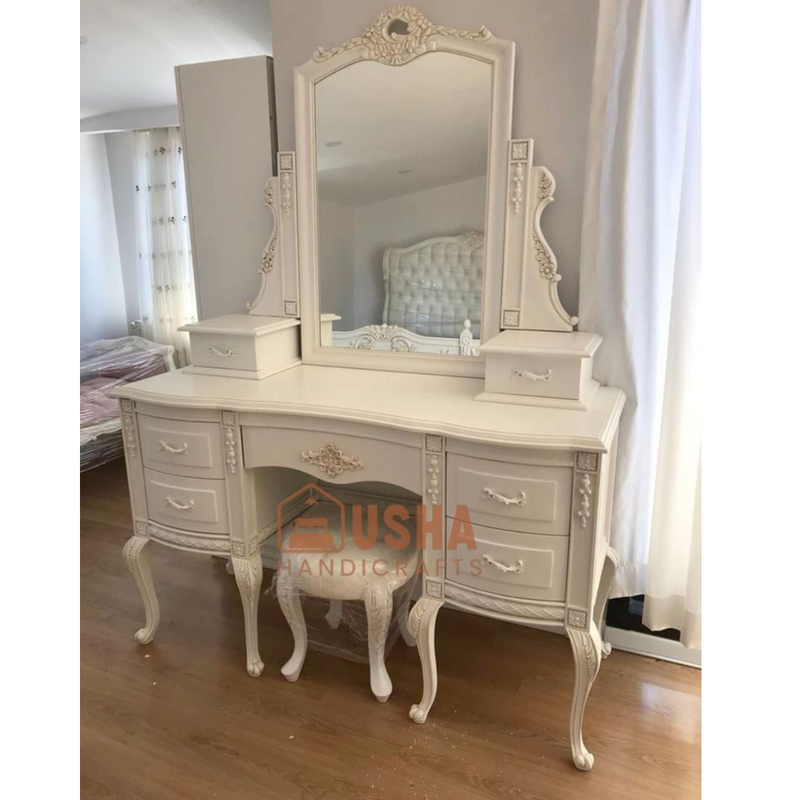 At USHA Furnishing, we design and create timeless furniture and décor pieces that bring warmth and character into your home. Every piece is handcrafted by skilled artisans using high-quality wood and sustainable practices. With a balance of traditional craftsmanship and modern design, our furniture is built to last while reflecting the soul of Indian artistry. Each product can be customized to suit your space and lifestyle, ensuring both beauty and functionality.