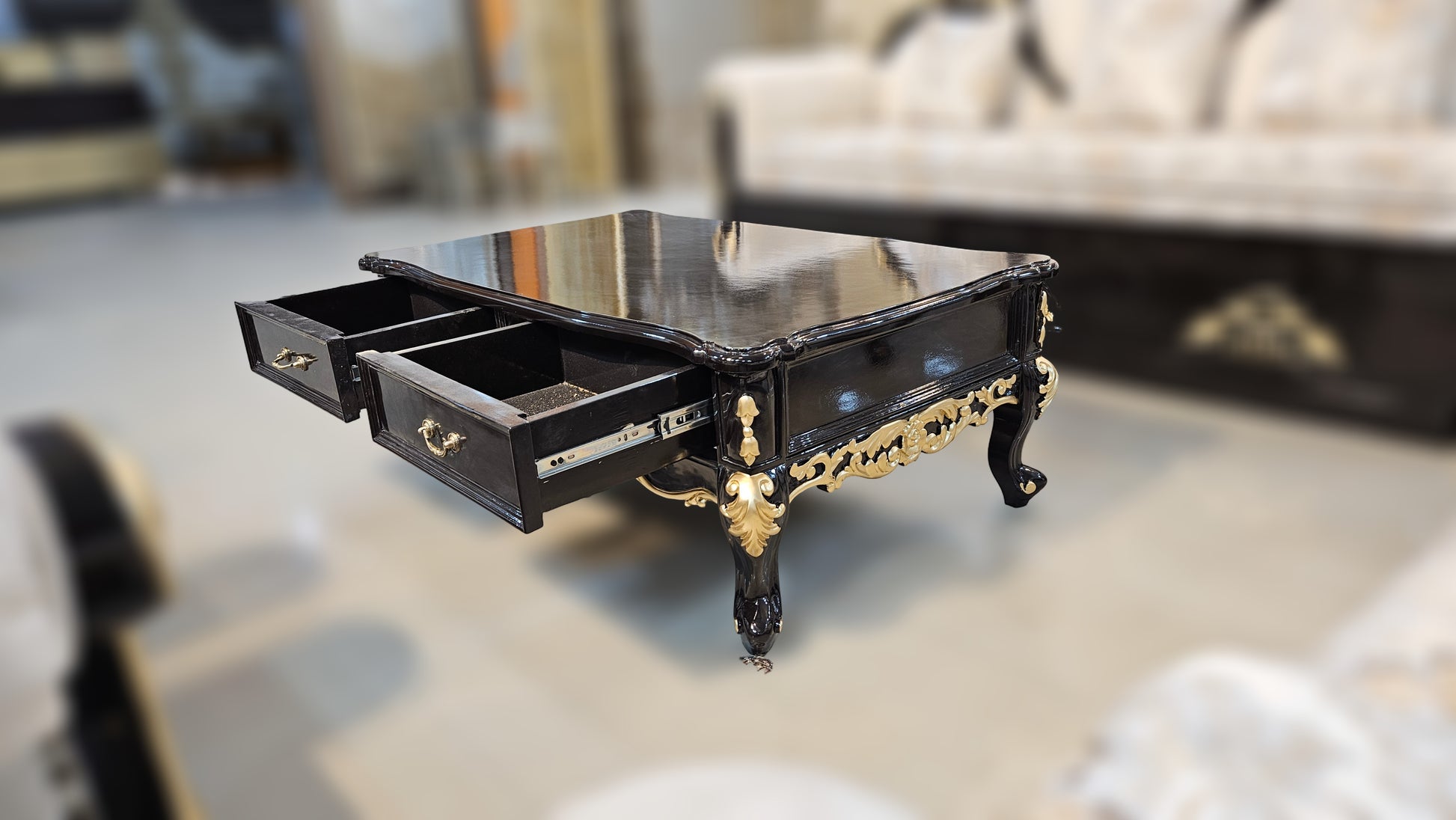 - Intricate hand-carved detailing with antique finish