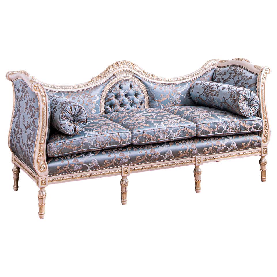 Luxury Handcrafted Carved Wooden Sofa with Upholstered Seating