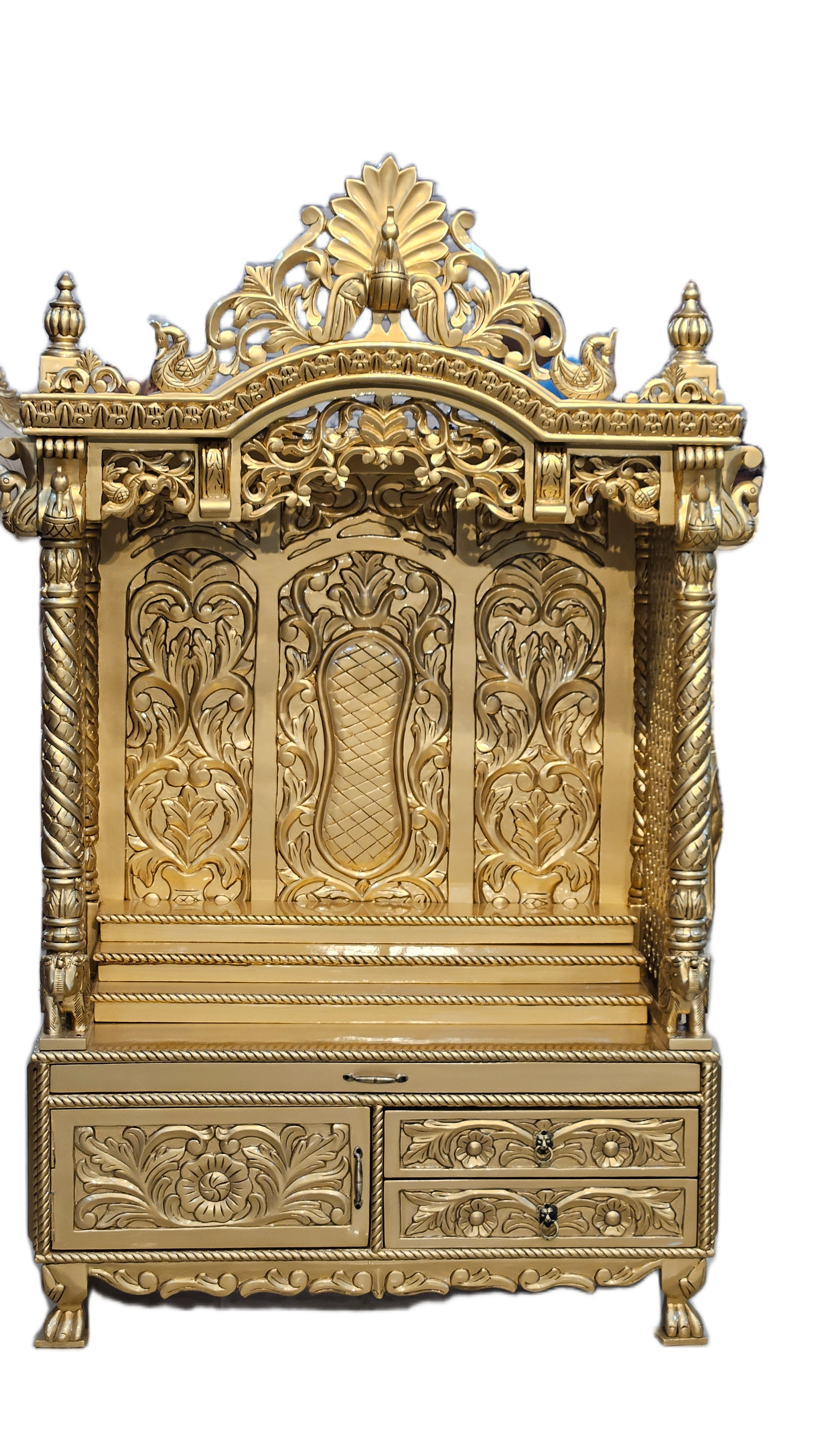 Bring peace and devotion into your home with this handcrafted wooden temple, designed to create a serene and spiritual atmosphere. Expertly made by skilled artisans, this mandir blends traditional craftsmanship with elegant design, making it a timeless addition to your interiors. Whether kept in your living room, hallway, or dedicated pooja room, it enhances both the look of your home and the purity of your prayers.