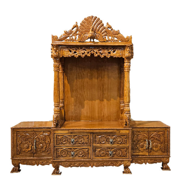 Bring peace and devotion into your home with this handcrafted wooden temple, designed to create a serene and spiritual atmosphere. Expertly made by skilled artisans, this mandir blends traditional craftsmanship with elegant design, making it a timeless addition to your interiors. Whether kept in your living room, hallway, or dedicated pooja room, it enhances both the look of your home and the purity of your prayers.