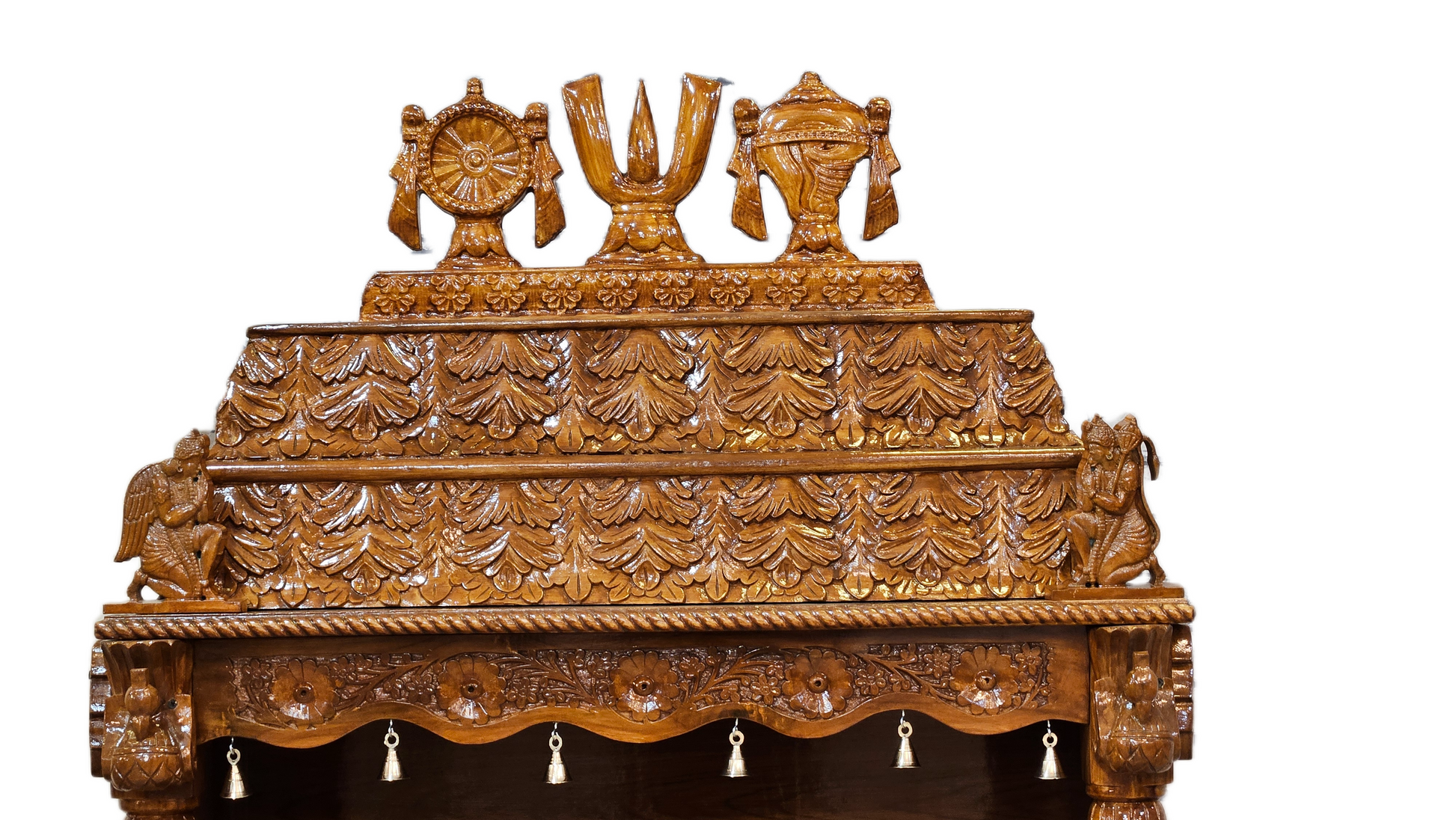 Bring peace and devotion into your home with this handcrafted wooden temple, designed to create a serene and spiritual atmosphere. Expertly made by skilled artisans, this mandir blends traditional craftsmanship with elegant design, making it a timeless addition to your interiors. Whether kept in your living room, hallway, or dedicated pooja room, it enhances both the look of your home and the purity of your prayers.