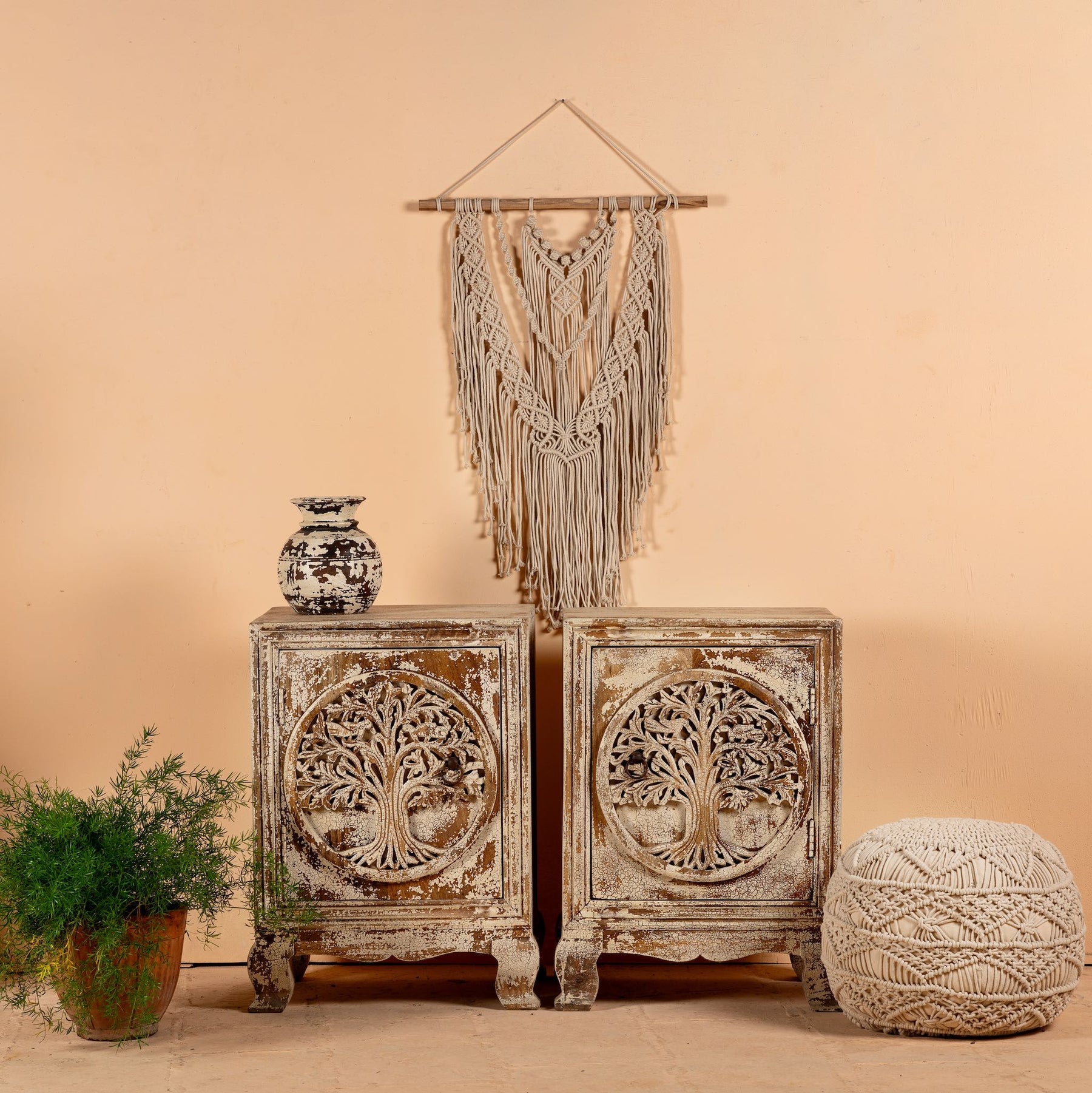 Handcrafted Carved Bedside Table with Elegant Detailing