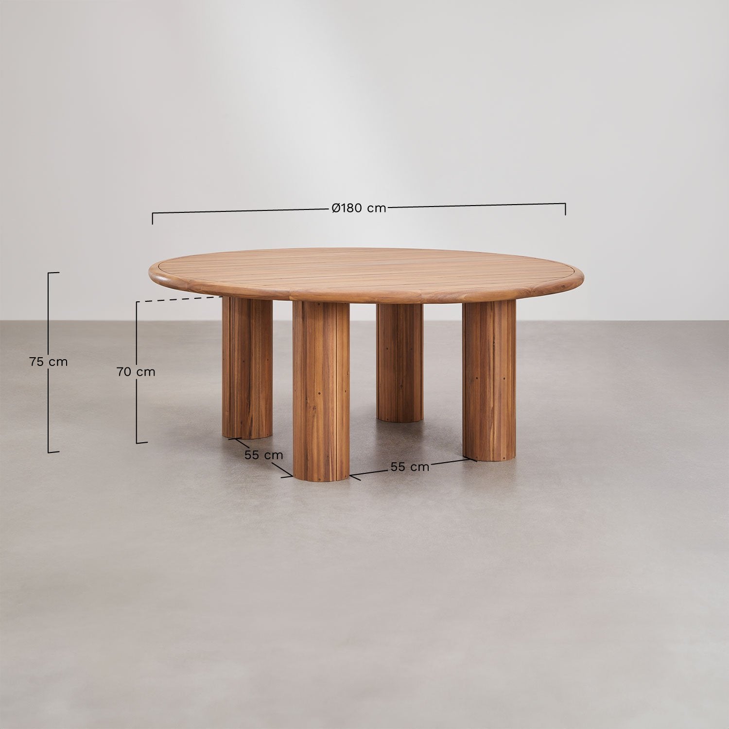 - Table Dimensions: 75Hx180Lx180W CM